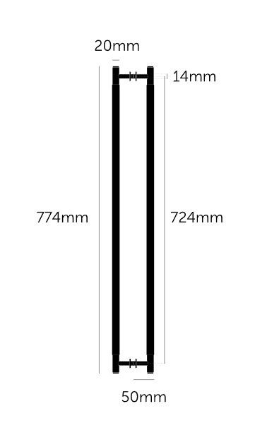 La taille de l'arbre de ces poignées est de 724 mm et la longueur totale est de 774 mm.