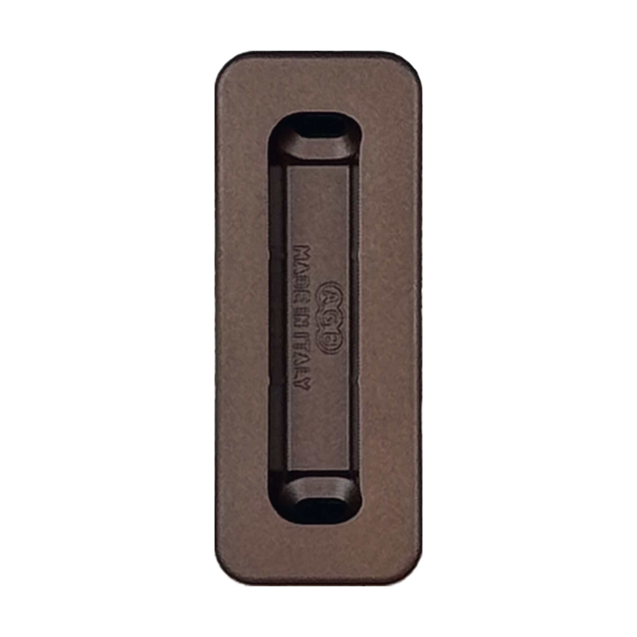 Cette contre-plaque rectangulaire sert aux serrures magnétiques AGB. C'est la cuvette qui est placée dans le montant de la porte pour que l'aimant des serrures magnétiques sorte.
