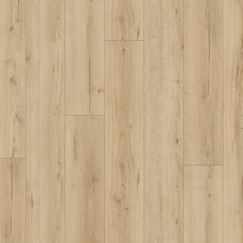 Avec une épaisseur de 8 mm et des planches larges de 24,3 cm de large et 220 cm de long - presque deux fois plus longues que les planches stratifiées standards - vous créez une atmosphère spacieuse et luxueuse. Les planches ont une rainure en V tout autour (côté mini biseau), qui offre des transitions subtiles et une profondeur supplémentaire entre les pièces.