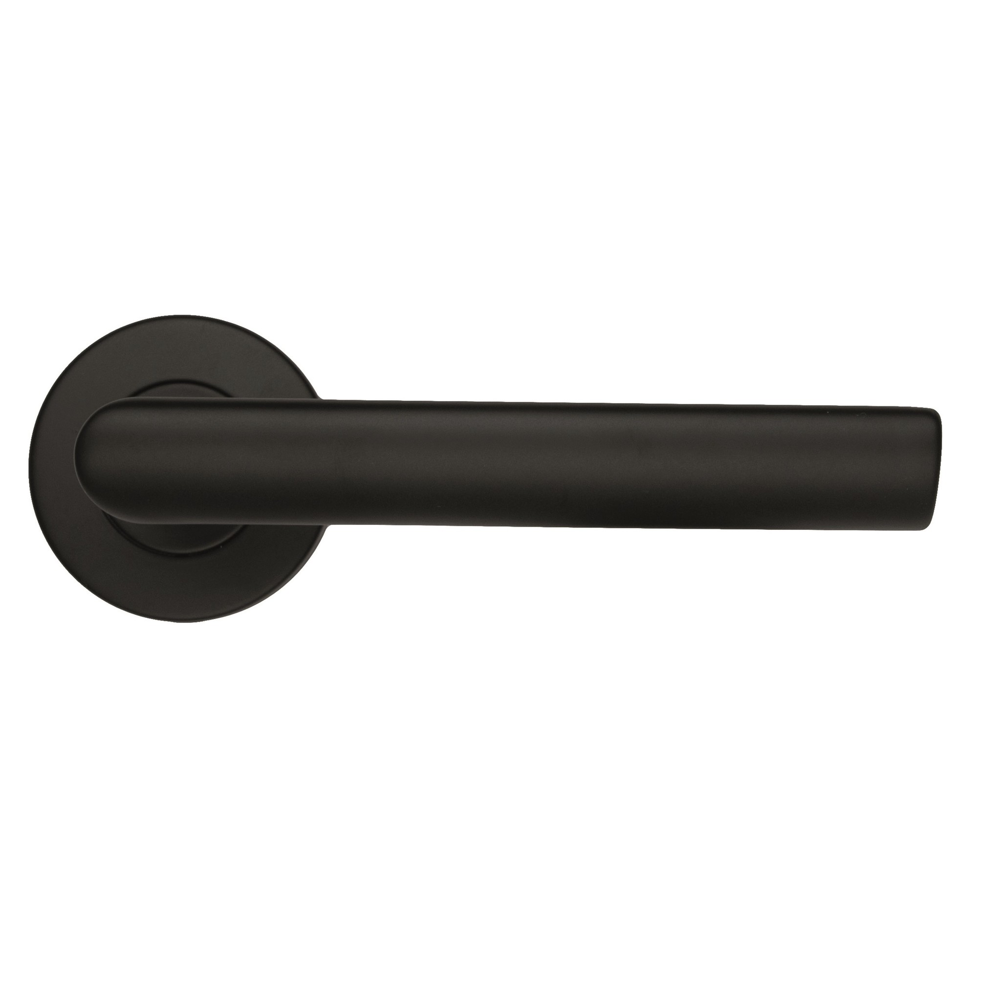 Les poignées de porte ovales noires reposent sur des rosaces rondes et sont disponibles en 4 variantes : sans plaques à clés, avec plaques à clés, avec plaques à cylindre et avec garnitures de toilettes. Faites votre choix dans le menu déroulant en haut à droite.
