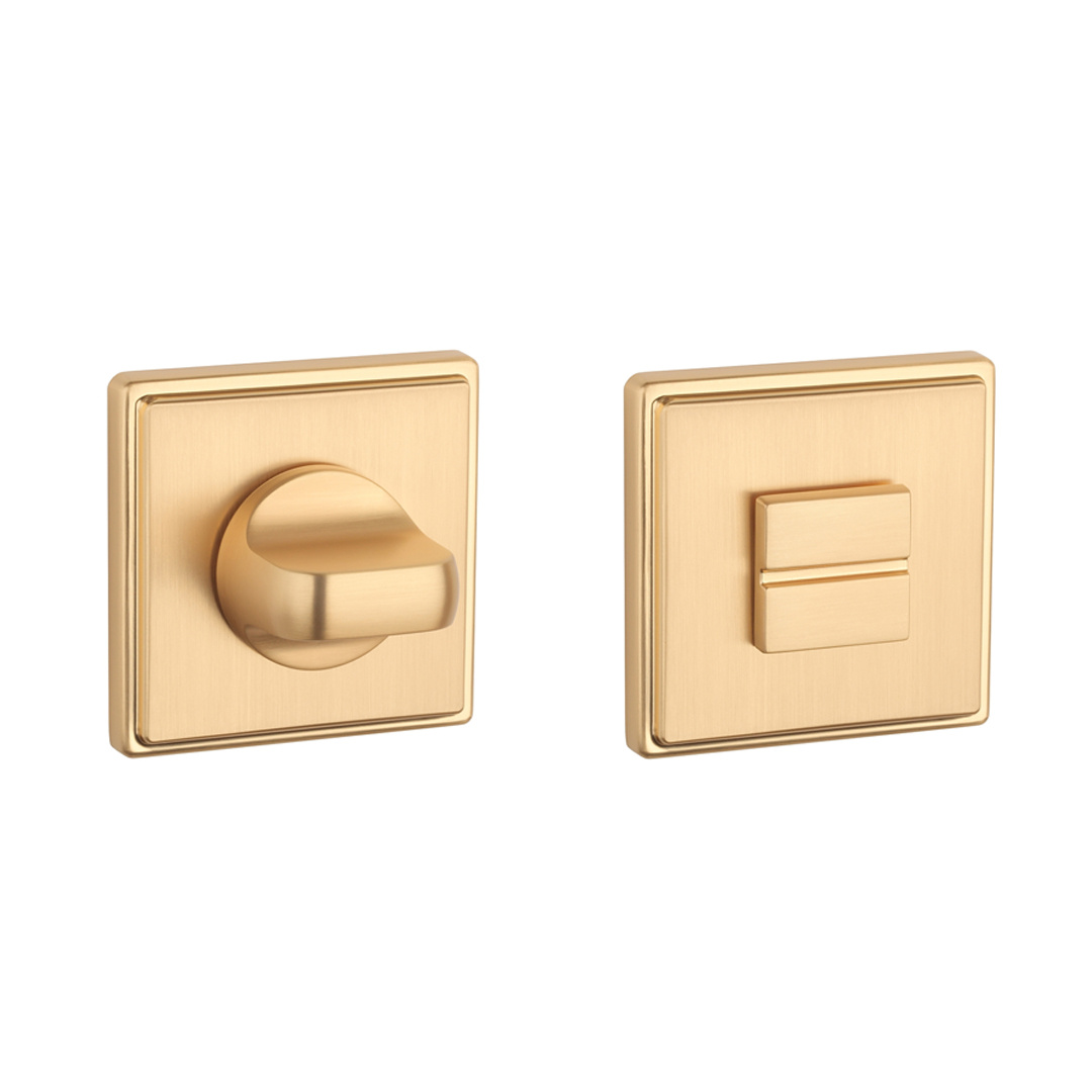 Robinet de WC sur rosaces nervurées carrées 52x52x7 mm, finition or mat avec une finition zinc de haute qualité.