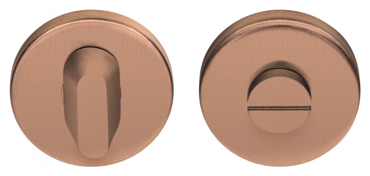 Cet ensemble de toilettes en cuivre mat PVD provient de la série Basics de Formani.