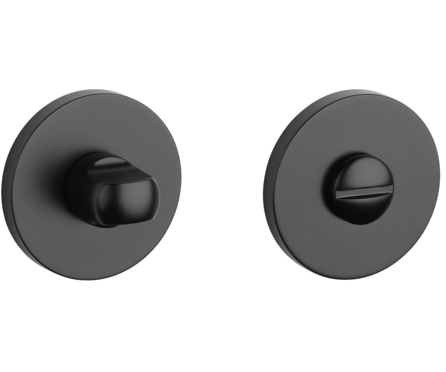 Cet ensemble de toilettes noir est doté de rosaces rondes de Ø 53 mm et d'une épaisseur de seulement 7 mm, ce qui leur confère un aspect esthétique attrayant sur les portes.