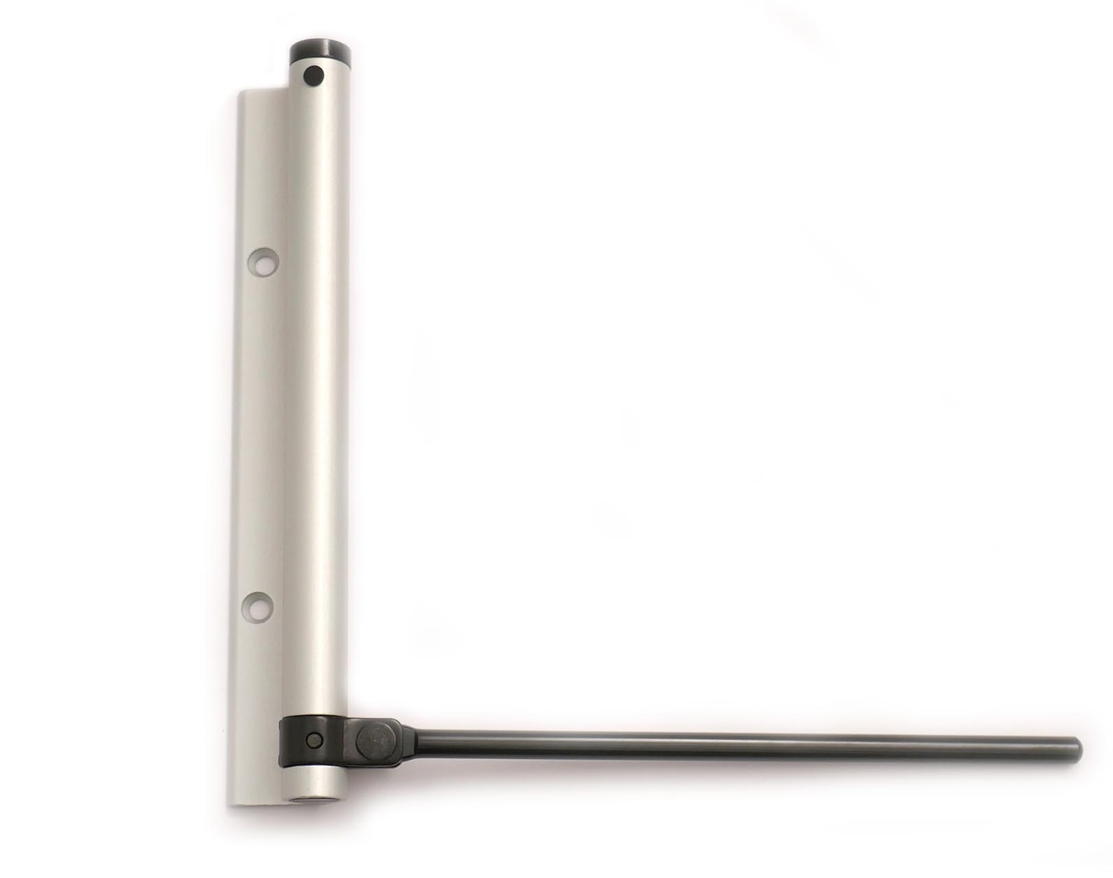 Ce ferme-porte gris argenté est en aluminium anodisé. Le stylo est en acier. Le ressort mobile est également en acier, mais avec de la graisse protectrice. Le matériau utilisé pour l'arbre intérieur est l'acier inoxydable AISI 304.