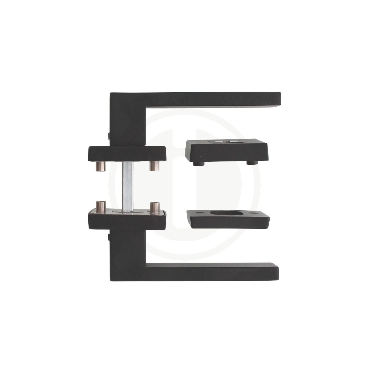 Ferrure de porte arrière noire "Amsterdam" pour usage extérieur sur rosaces carrées pleines et plaques de cylindre de sécurité avec poignée centrale SKG*** Acier inoxydable noir mat