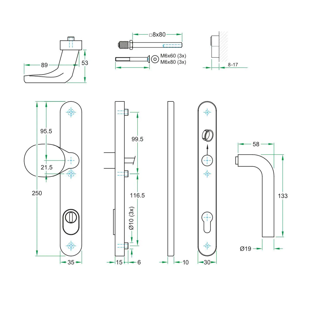 La fixation par vis dissimulées à l'intérieur du panneau de porte confère une esthétique épurée et moderne, sans points de fixation apparents. Adaptée aux portes de 37 à 57 mm d'épaisseur et compatible avec les portes en aluminium, bois, PVC et acier, cette quincaillerie est polyvalente et convient aussi bien aux espaces résidentiels qu'aux établissements de santé, ainsi qu'à divers types de bâtiments à fort passage.