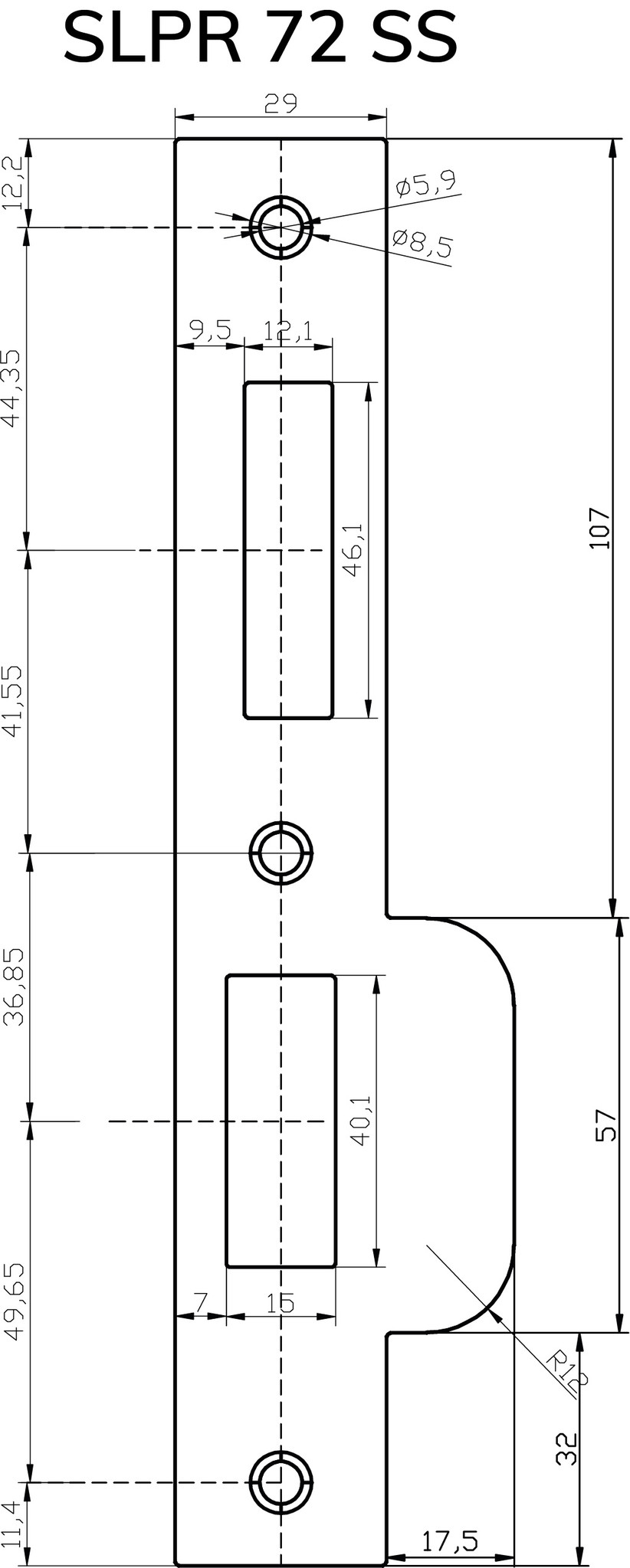 Gâche inox à angle droit pour serrure à mortaiser de sécurité PC72