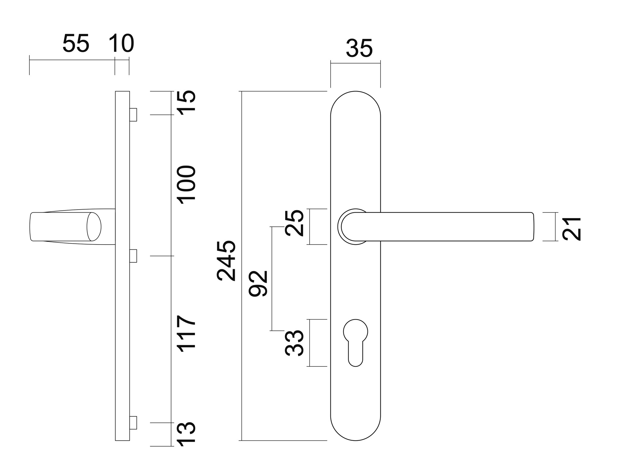 Deux broches sont incluses (120 mm et 135 mm, 8x8 mm), de sorte que la ferrure de sécurité peut être utilisée pour tous les types de portes.