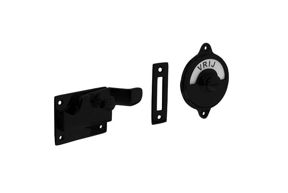 Cette enveloppe de toilette est en noir mat et est fournie avec une plaque de texte en émail avec "vrij/bezet"