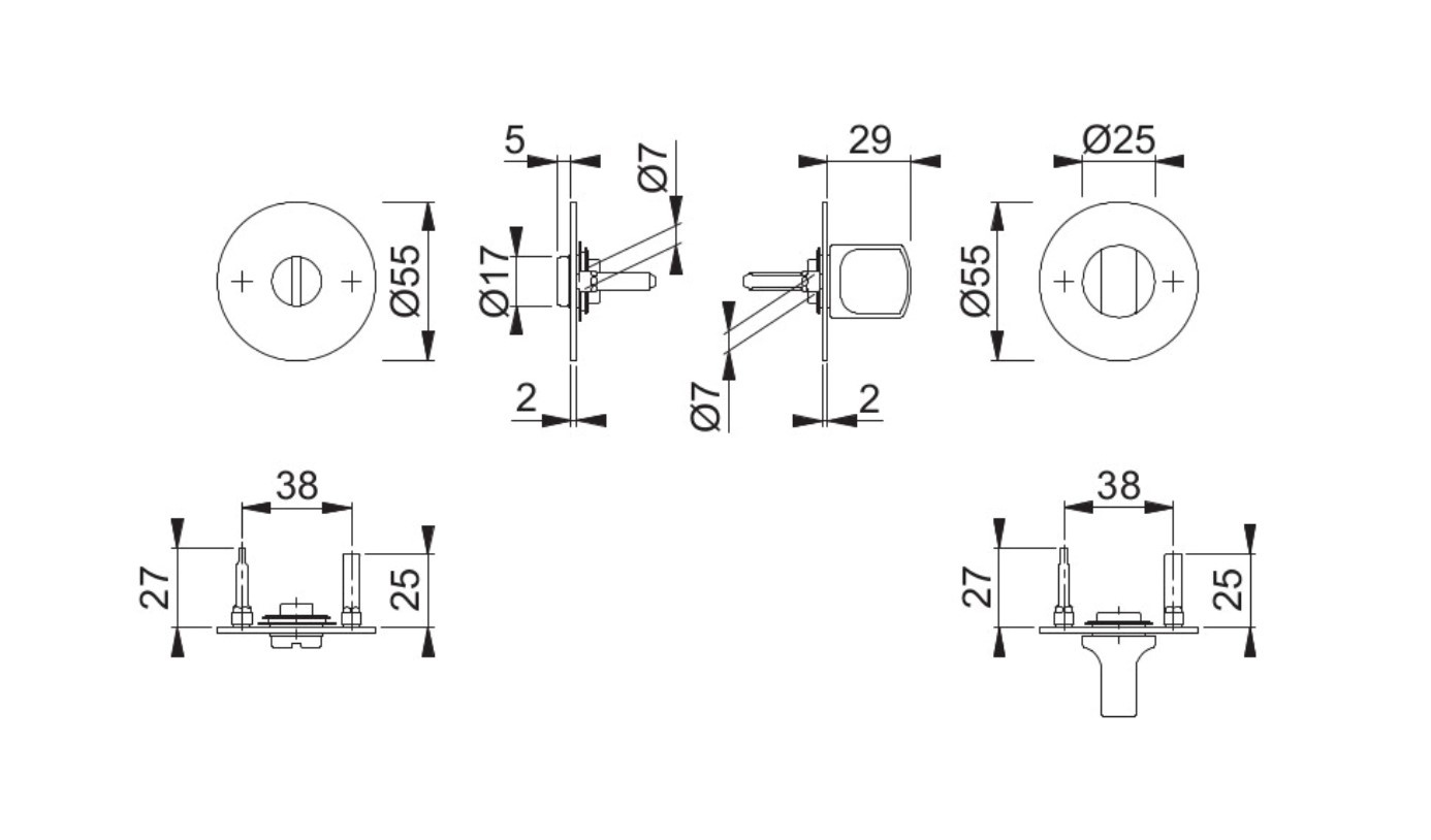 Cet ensemble de toilette Hoppe a une rosace ronde extra fine de seulement 2 mm. Cela vous donne un joli résultat serré.
