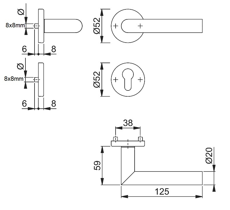 La goupille rapide a un diamètre de 8x8 mm et est déjà fixée dans une partie à 1 trou. Cela ne permet pas d'utiliser ces poignées de porte en France.