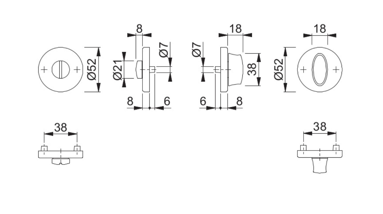 Il s'agit d'une fermeture de toilette ronde d'un diamètre de 52x8 mm. Les accessoires de toilette sont fournis par paire, y compris la tige carrée (8x8 mm) et les matériaux de montage.