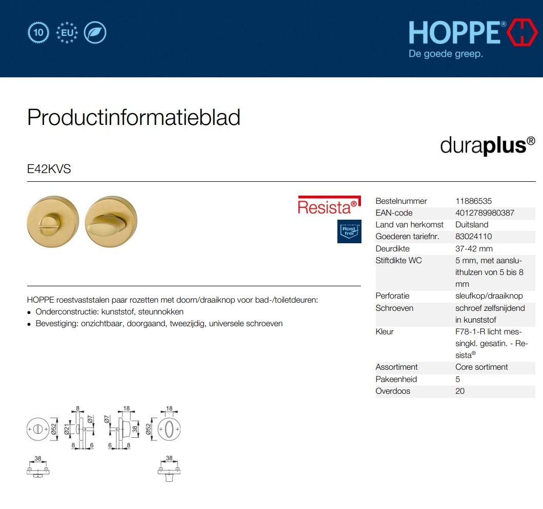 Ces ferrures de WC rondes de Hoppe appartiennent à la catégorie Resista et peuvent être combinées avec les poignées de porte HOPPE Los Angeles.
