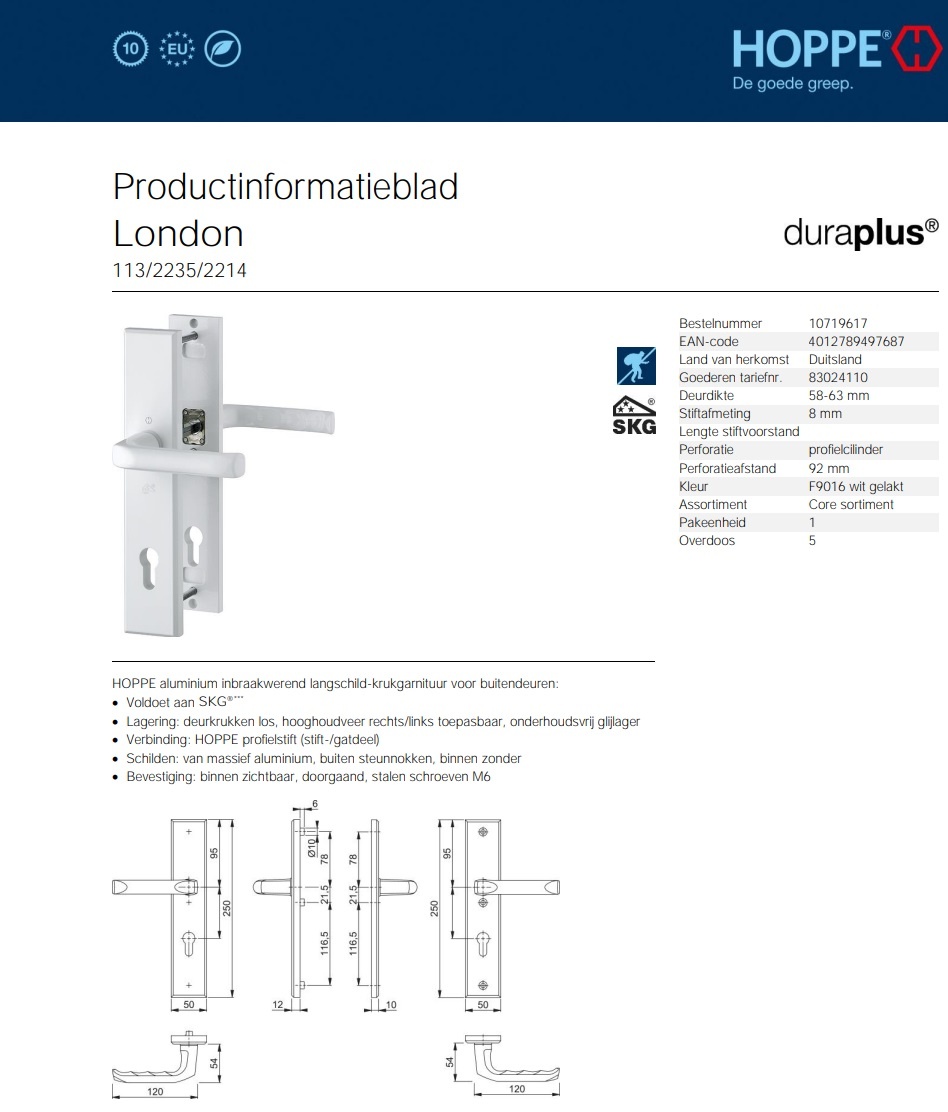 Hoppe ensemble de sécurité London Poignee/poignee blanc - PZ92mm