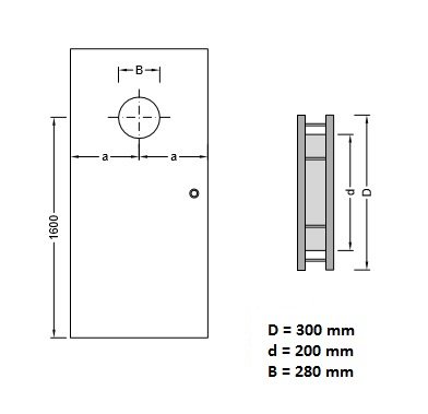 Le diamètre de l'ouverture à prévoir dans la porte est de 280 mm.