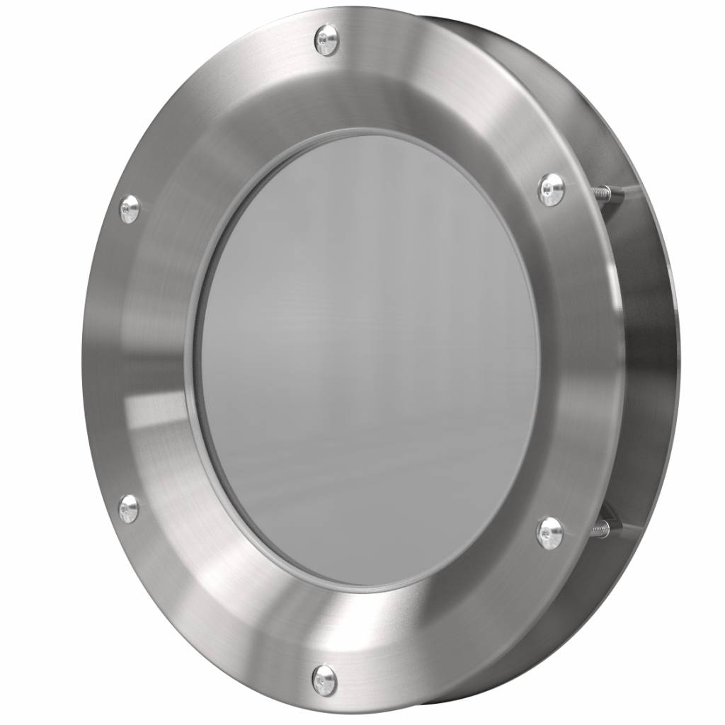 Ce hublot en acier inoxydable a un bord biseauté et est équipé d'un verre de sécurité feuilleté de 4 mm.
