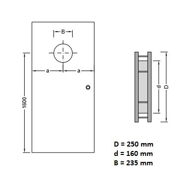 Le diamètre de l'ouverture à prévoir dans la porte est de 235 mm.