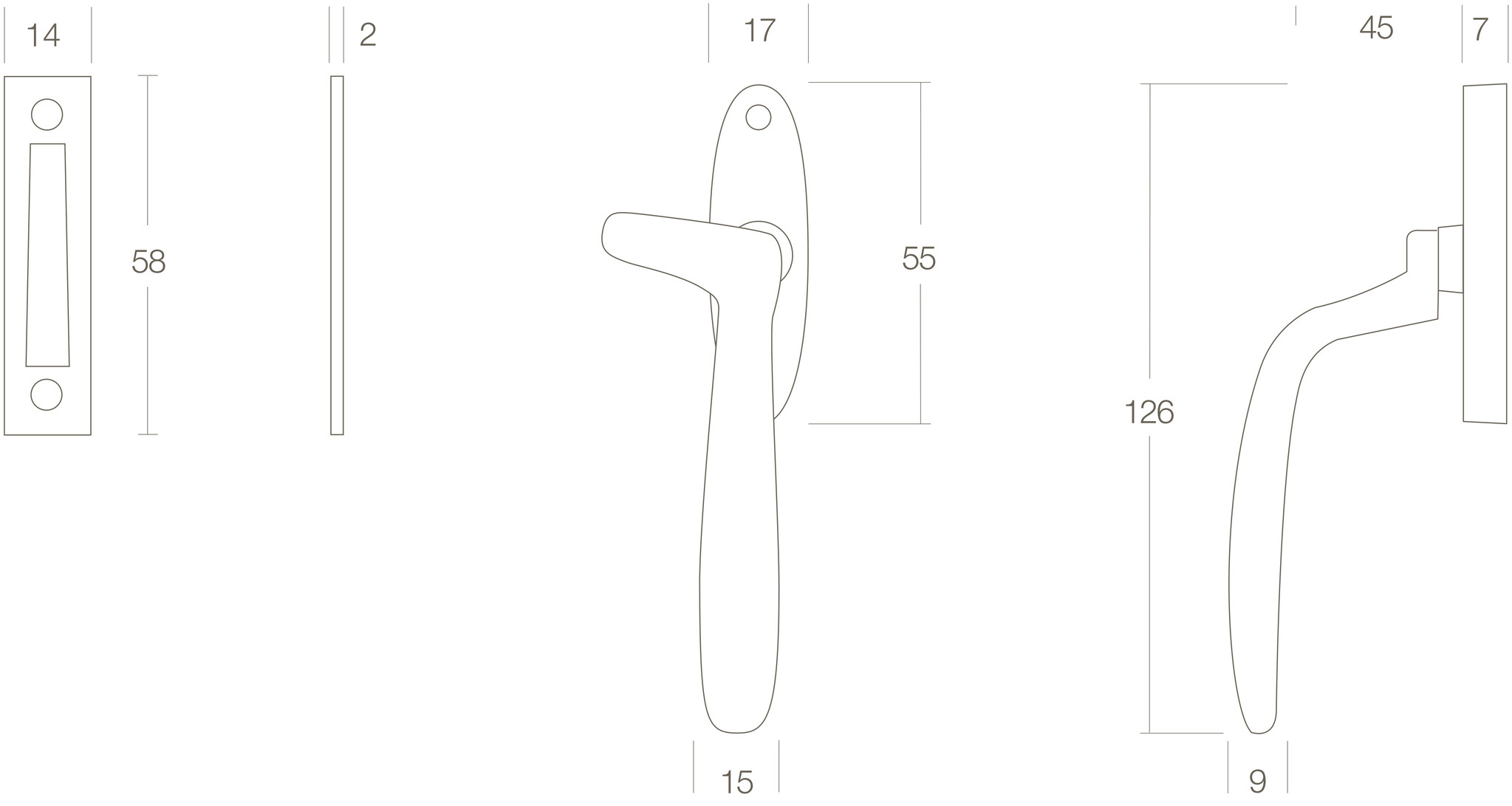 Cette fermeture en version droite est également disponible en version gauche et est livrée à l'unité comprenant une rosace ovale à visser et une gâche.