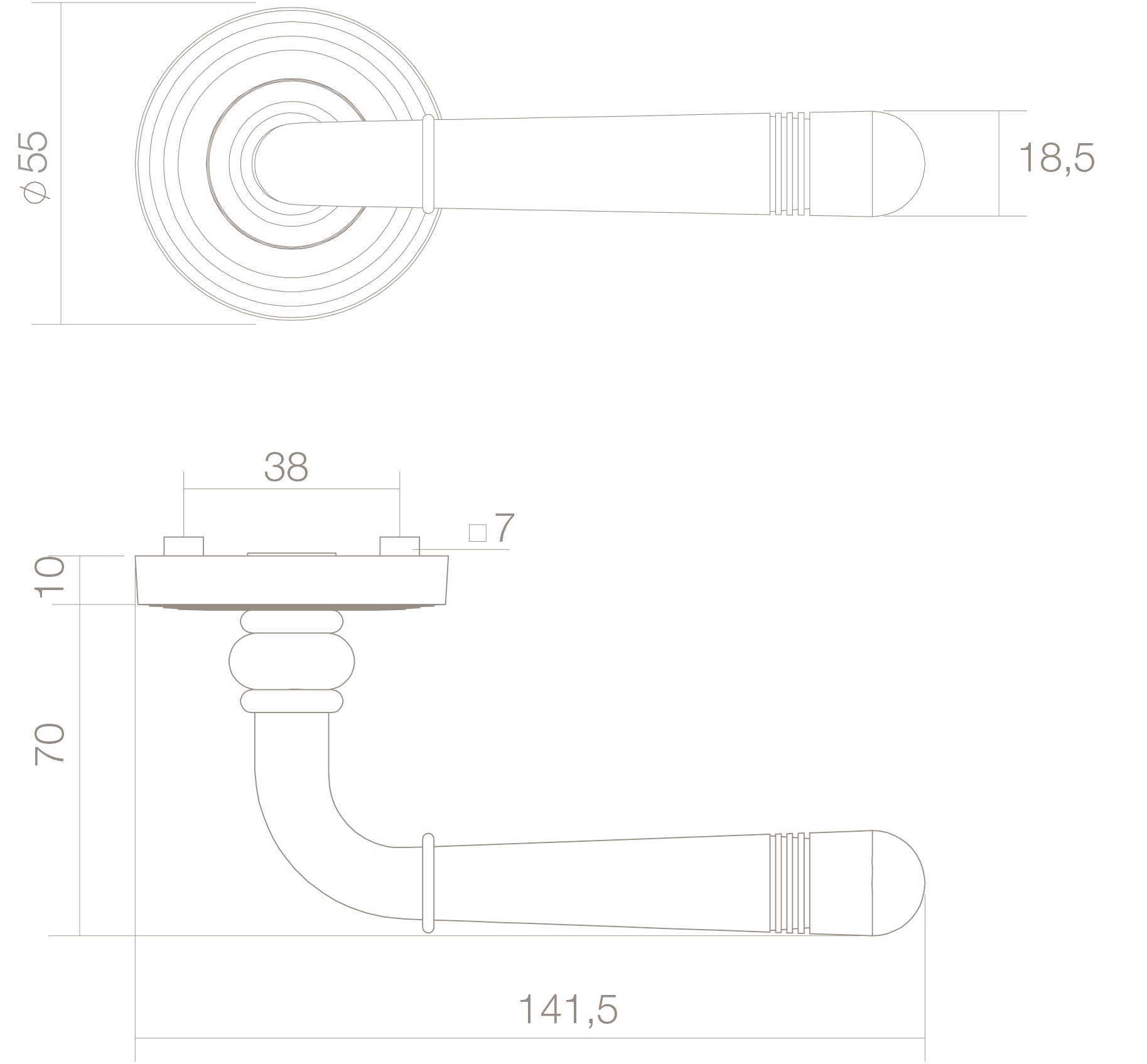 Cette poignée de porte "Helena" au look vieux gris repose sur une rosace ronde d'un Ø de 55mm et d'une épaisseur de 10mm.
