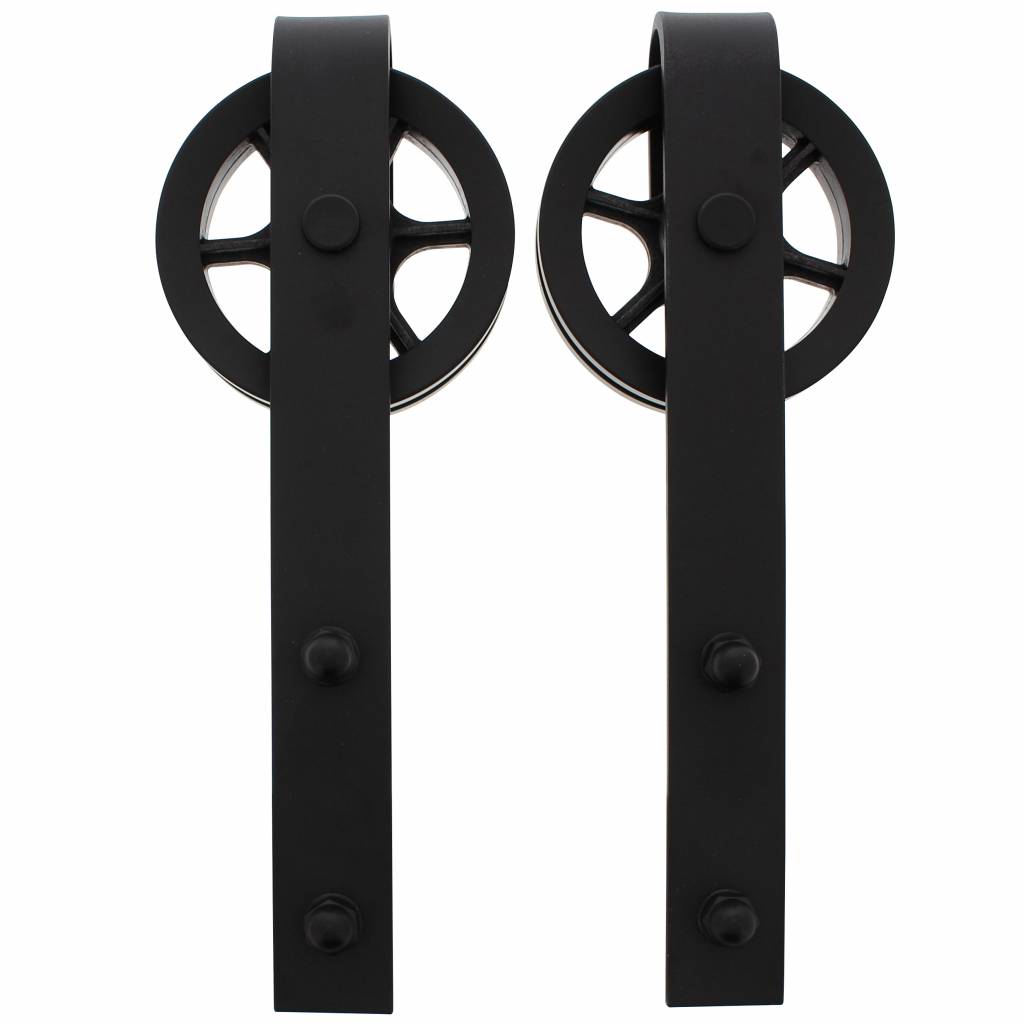 Jeu supplémentaire de 2 rouleaux suspendus avec roue à rayons 340 mm noir mat pour portes doubles