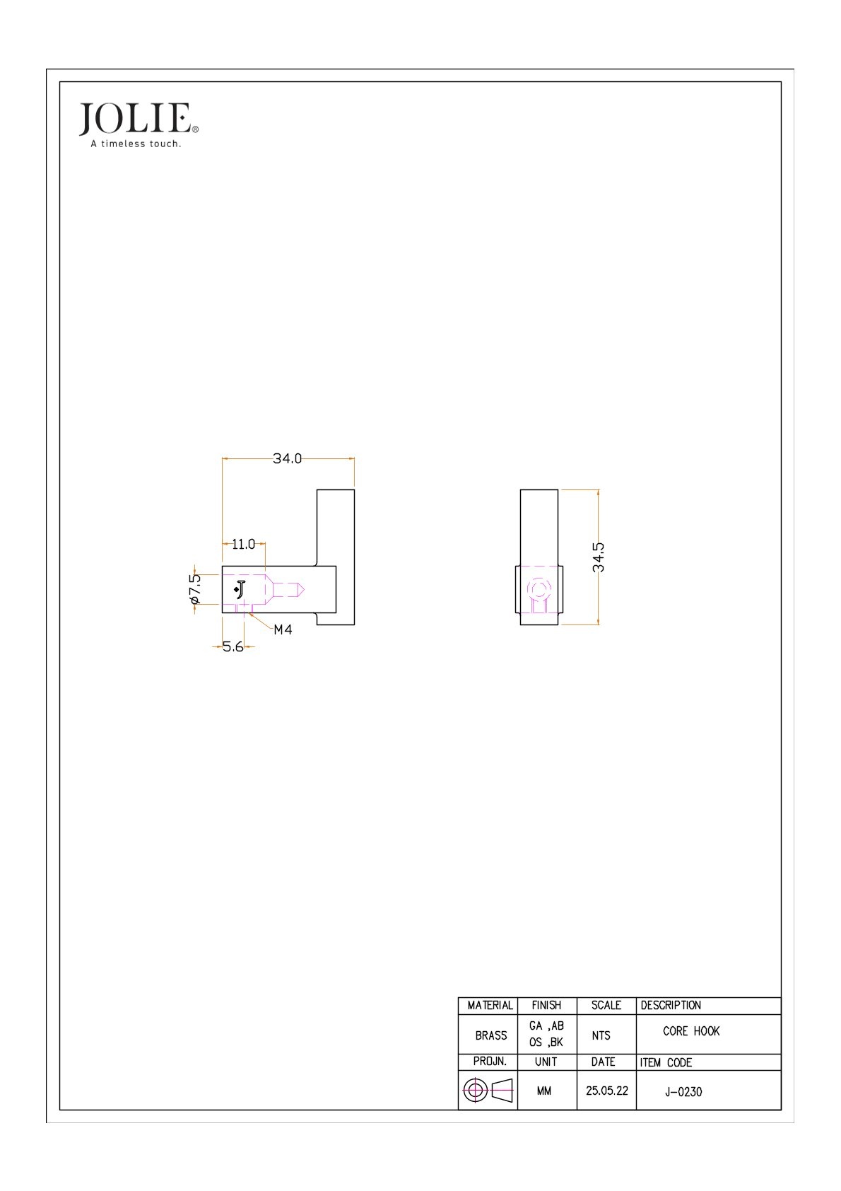 Description Crochet à vêtements moulé au sable CORE, conçu par JOLIE design en bronze vieilli