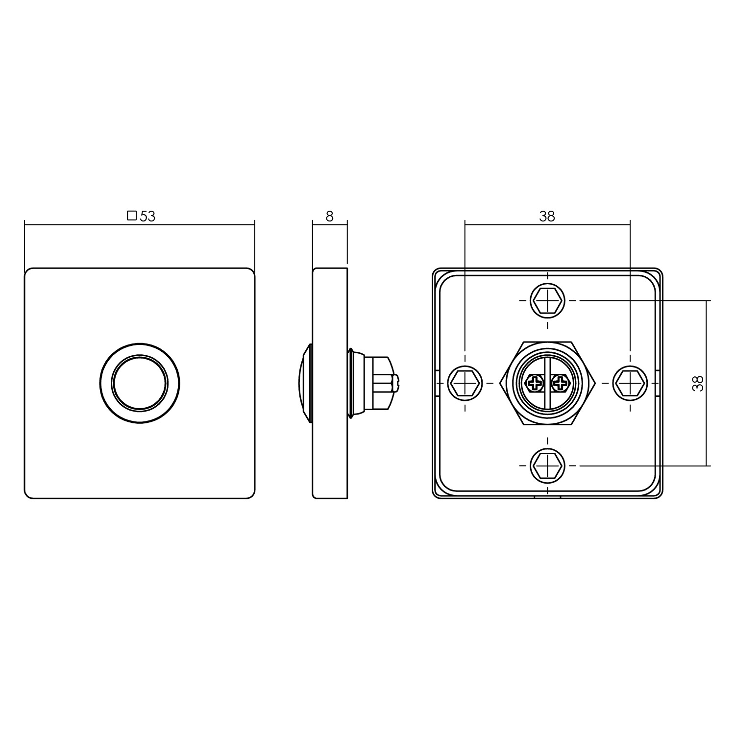 - un bouton de porte avant carré en acier inoxydable (montage unilatéral)