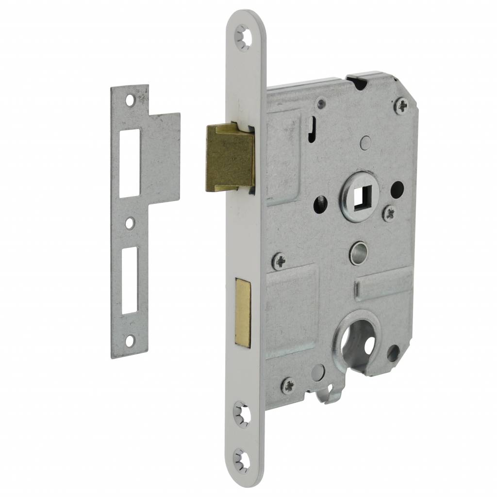 Serrure à cylindre blanche avec une taille d' axe de 55mm, une plaque frontale arrondie de 20x175mm et un mandrin de 50mm