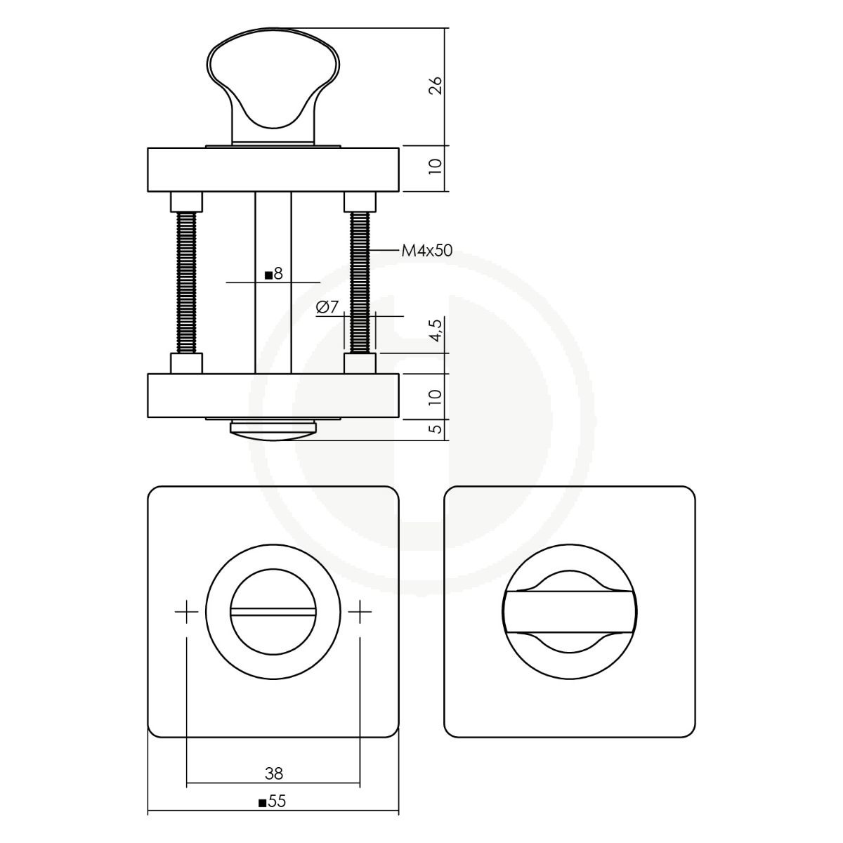 Ces rosaces carrées dissimulées avec fermeture WC/Salle de bain sont en zamak et ont une taille de 55x55x10 mm. Ensuite, les rosaces sont pourvues d'un revêtement PVD couleur laiton de haute qualité, qui donne un aspect doré.