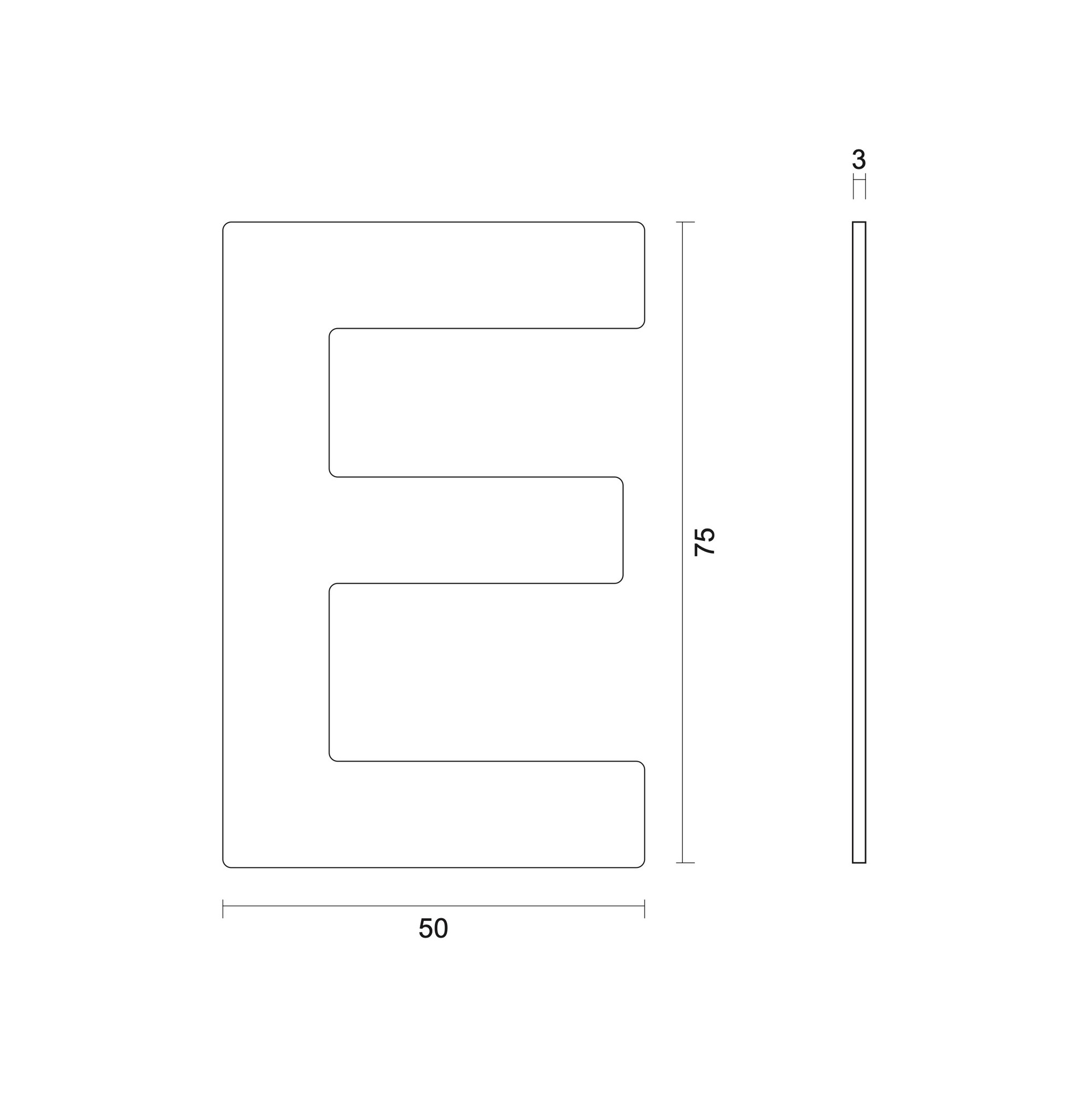 Version plus petite d'une lettre maison noire "E" d'une hauteur de 75 mm. La lettre maison noire est auto-adhésive, donc aucun trou n'a besoin d'être percé. La lettre peut être collée sur n'importe quelle surface plane et lisse.