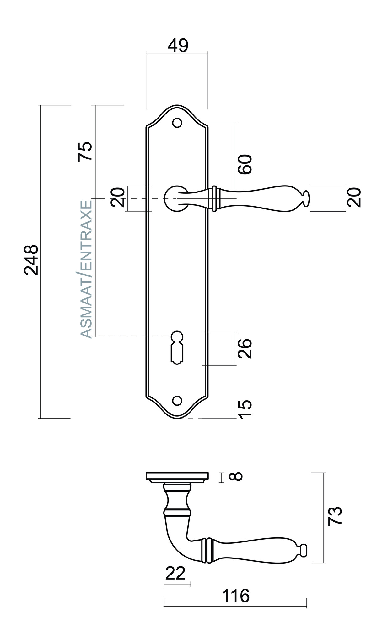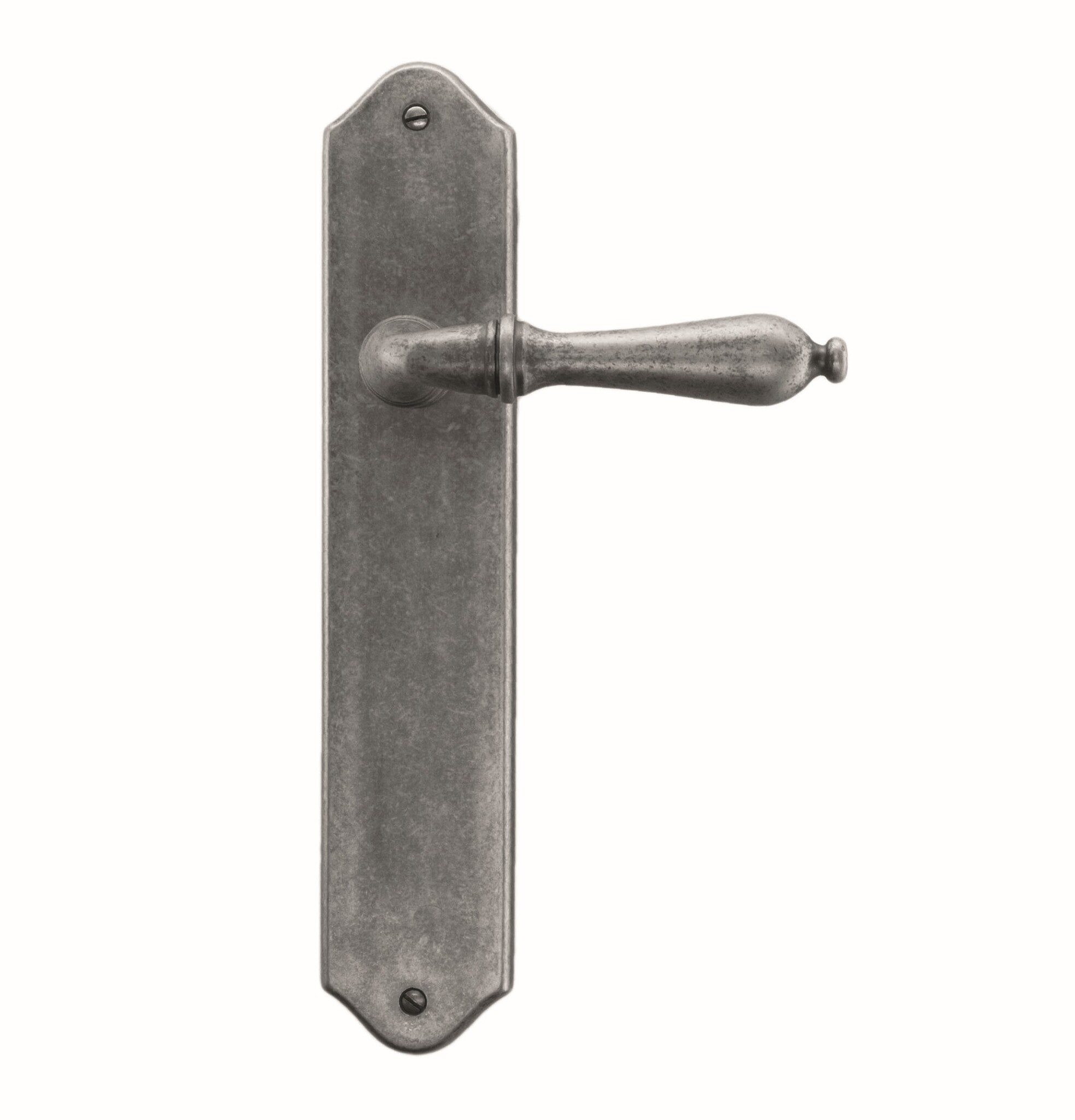Les poignées de porte sont fournies sur une plaque rustique par paire avec ou sans ouverture à clé et conviennent aux portes intérieures de 38-43 mm.