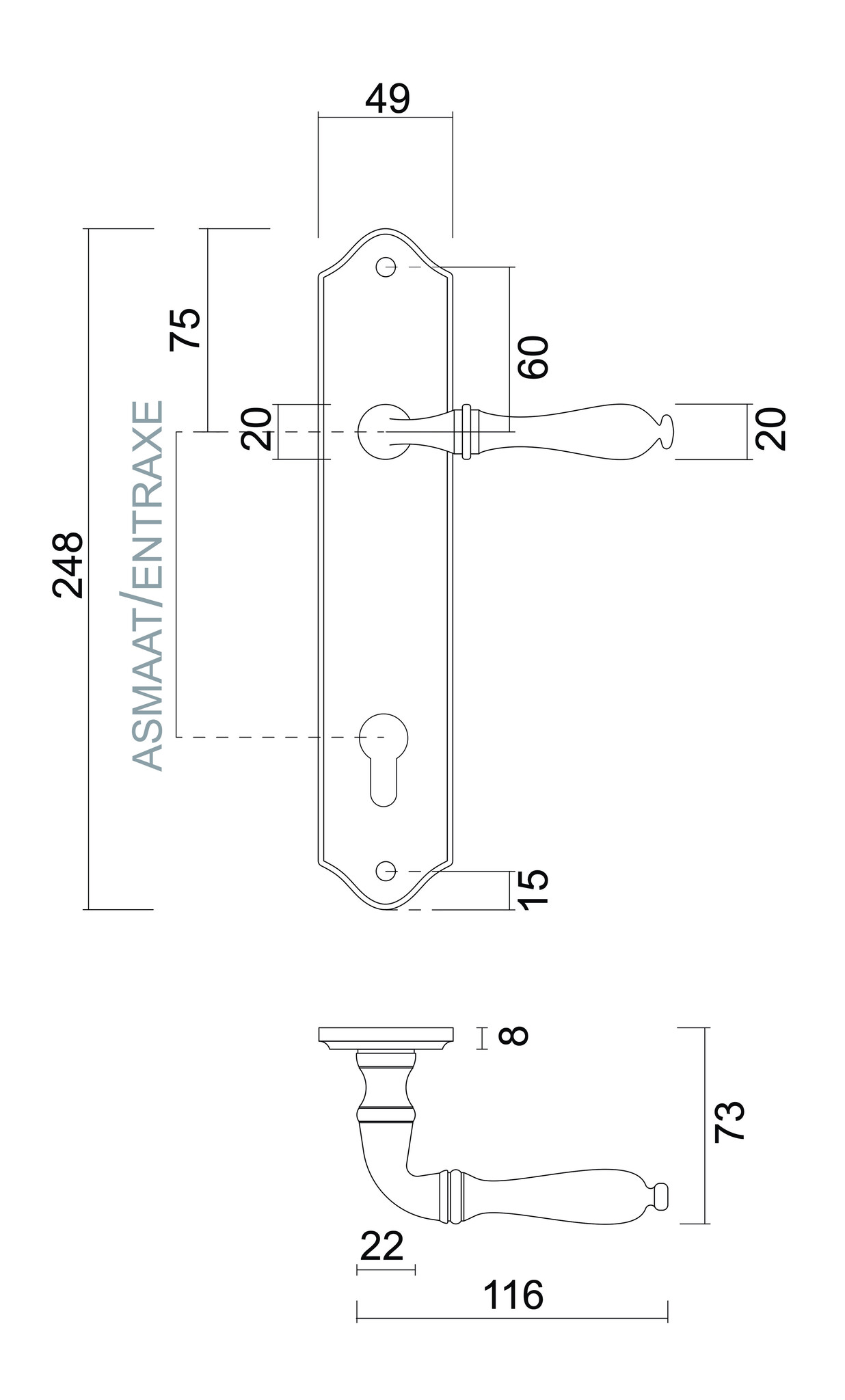 Ces poignées de porte classiques Lisa Old Silver sont disponibles en 4 versions, chacune avec plusieurs tailles d'essieu
