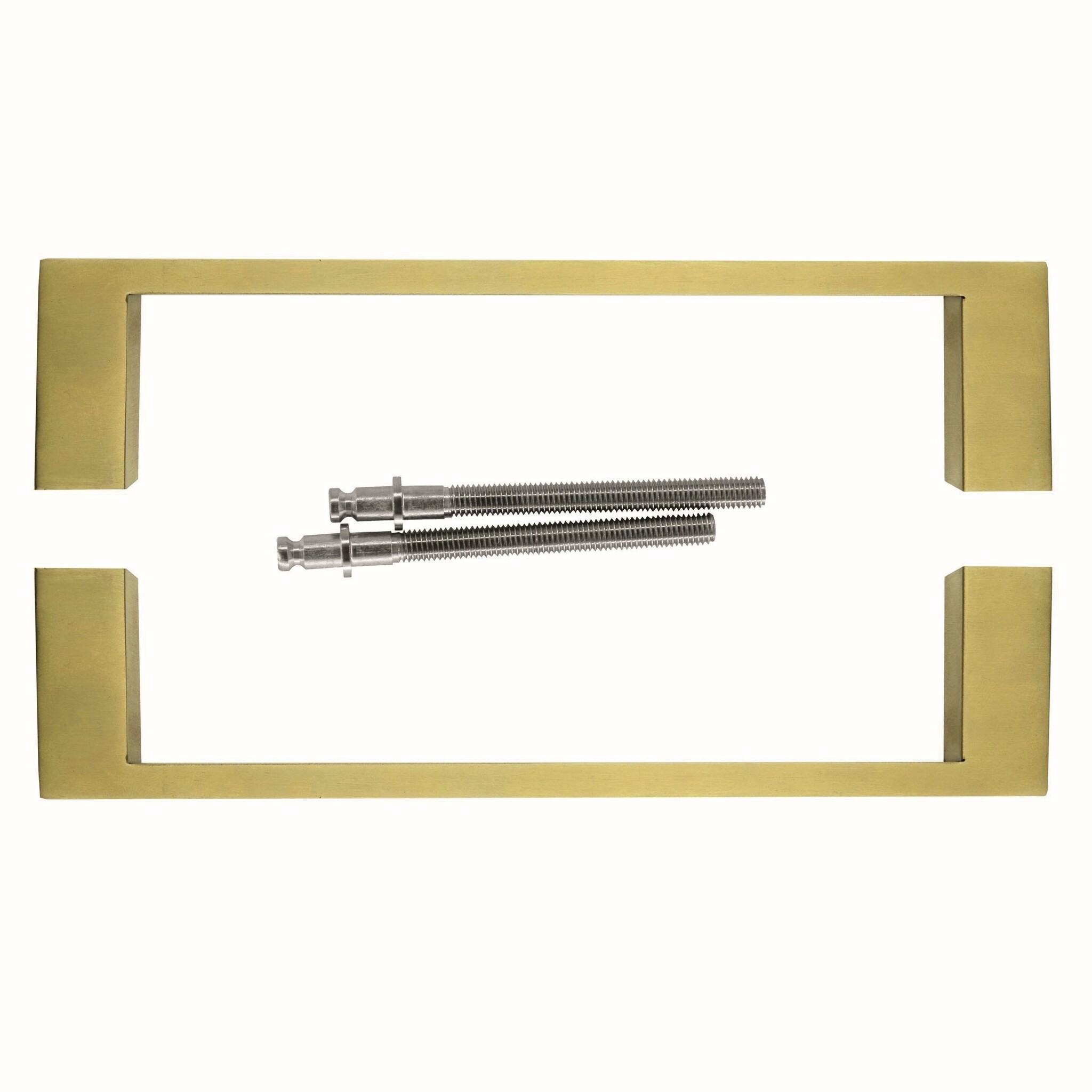 Poignées de porte élégantes en or mat en acier inoxydable avec pieds carrés 20x20 mm. La distance entre les 2 points de fixation est de 200 mm.
