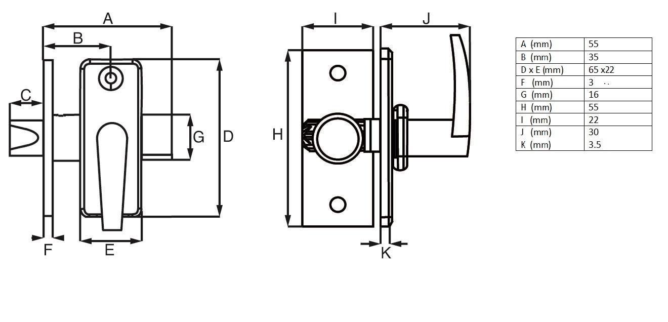 Pêne insert noir avec gâche, longueur 55 mm pour le verrouillage d'une fenêtre ou d'une porte