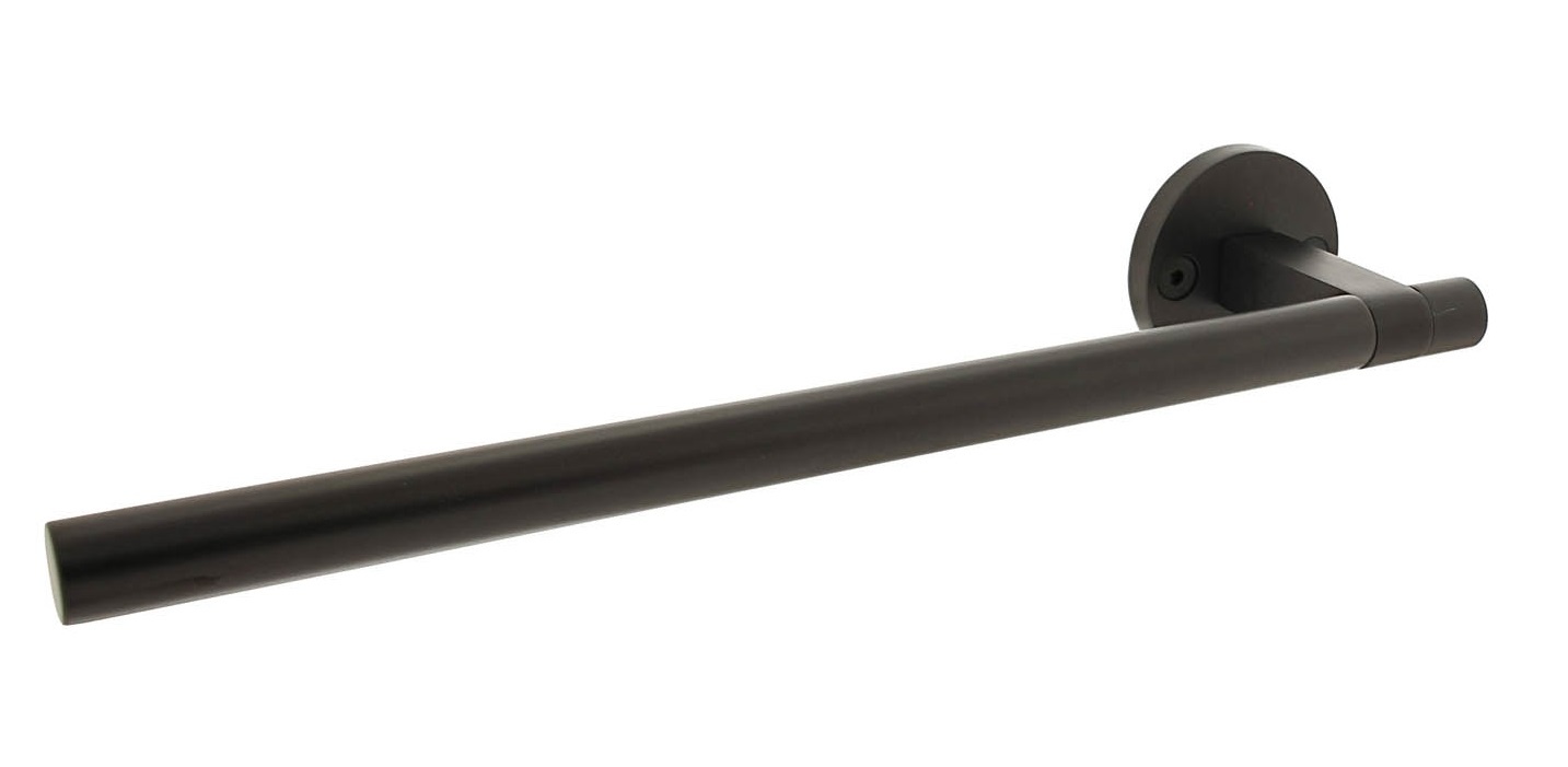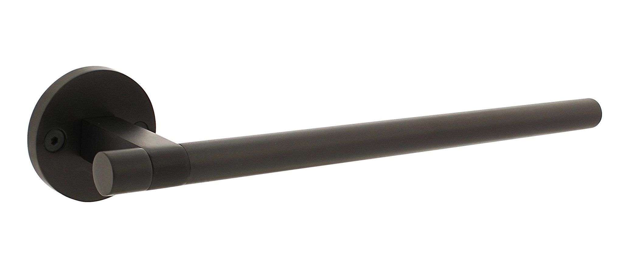 La poignée de porte est en acier inoxydable et est ensuite dotée d'un revêtement PVD noir très résistant. Cette poignée de porte est également dissimulée sur un côté à gauche, ce qui signifie que seul le côté où la poignée pointe vers la gauche a un montage aveugle. Les trous de vis sont visibles de l'autre côté.