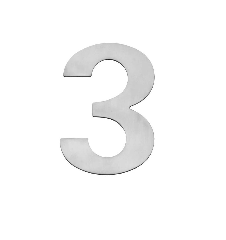 Numéro de maison élégant en acier inoxydable "3" avec une finition brossée.