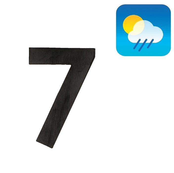 Version plus petite d'un numéro de maison plat noir "7" qui est autocollant avec une laque texturée résistante aux UV