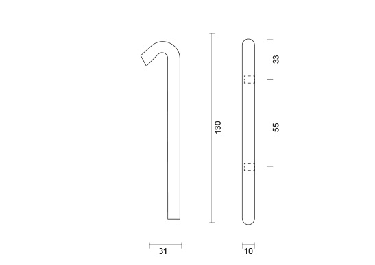 Le subtil numéro de maison en acier inoxydable a une forme ronde, une hauteur de 130 mm et un Ø de 10 mm.