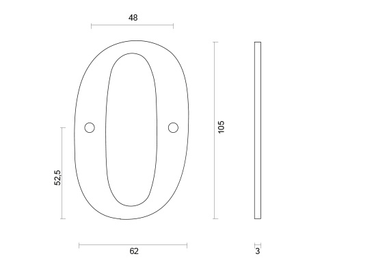 Le numéro de maison a une forme plate avec une hauteur de 106 mm et une épaisseur de 3 mm