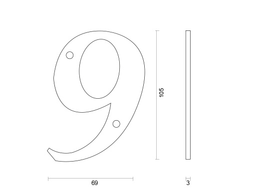 Le numéro de maison a une forme plate, une hauteur de 106 mm et une épaisseur de 3 mm.