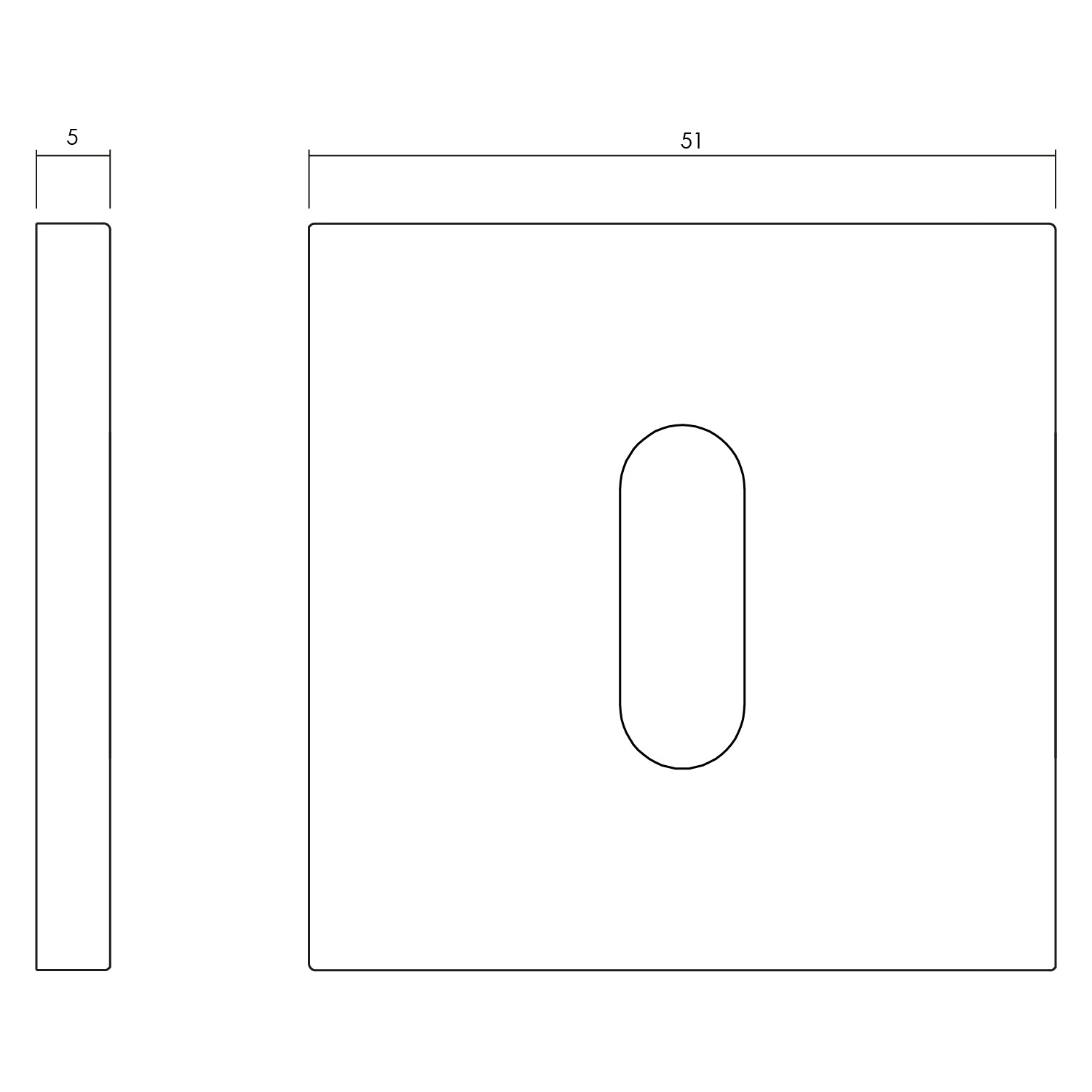 Cette rosace carrée avec trou de serrure est en laiton et possède un revêtement PVD anthracite mat de haute qualité.