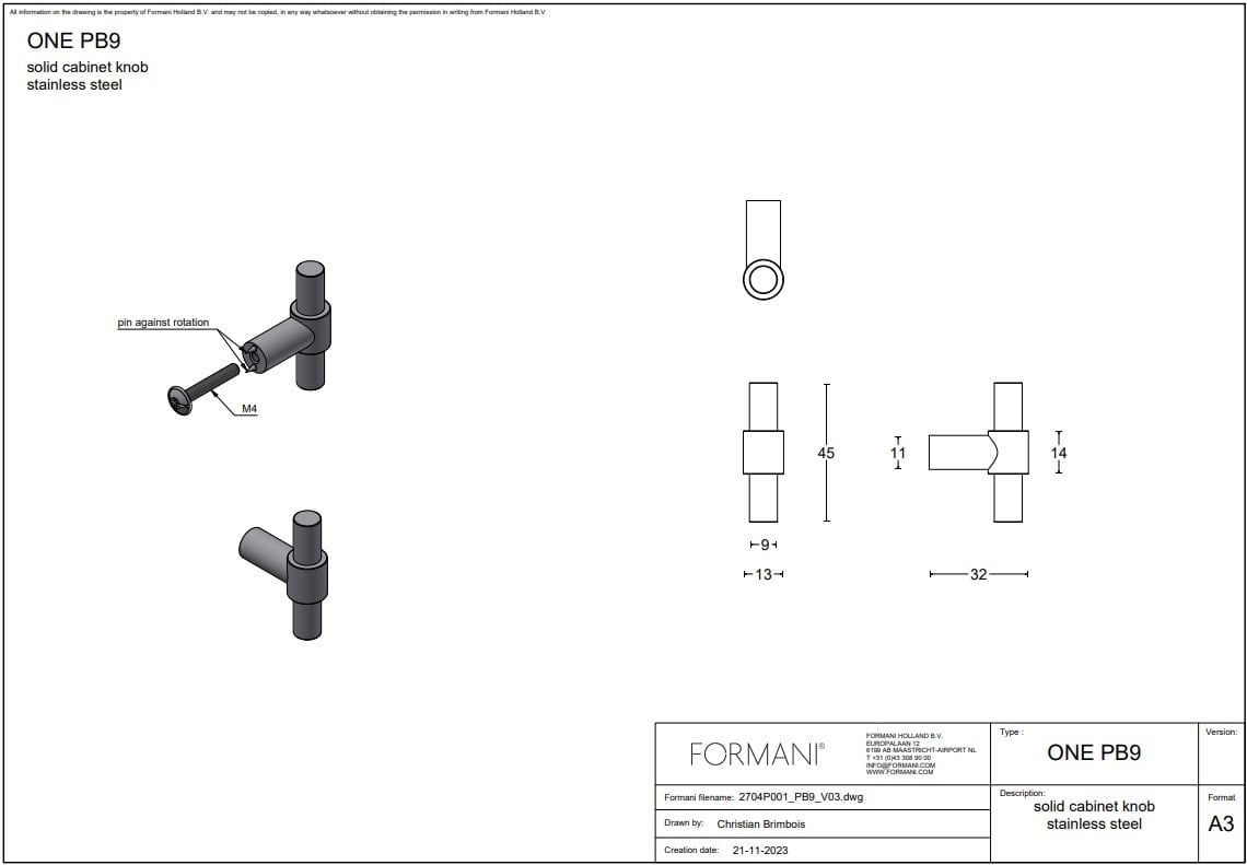 Ces boutons de meuble ONE sont disponibles en version plus petite (PB9) ou en version légèrement plus grande (PB14). Faites votre choix dans le menu déroulant en haut à droite.