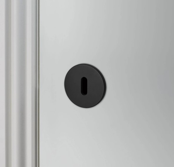 Ces rosaces de clés en noir Welders font partie de la série Linear (coupée horizontalement) de B+P.