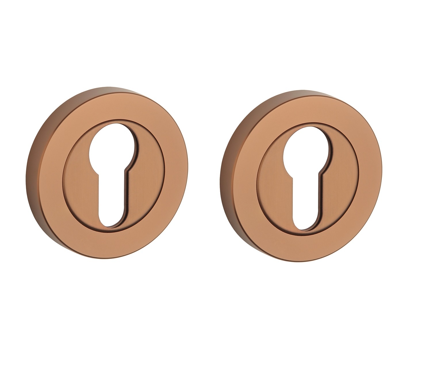 Ces rosaces cylindriques sont en acier inoxydable et sont fournies par paires comprenant des rosaces inférieures et des vis brevetées. Le revêtement PVD cuivre mat résistant garantit la solidité des couleurs pendant des années.