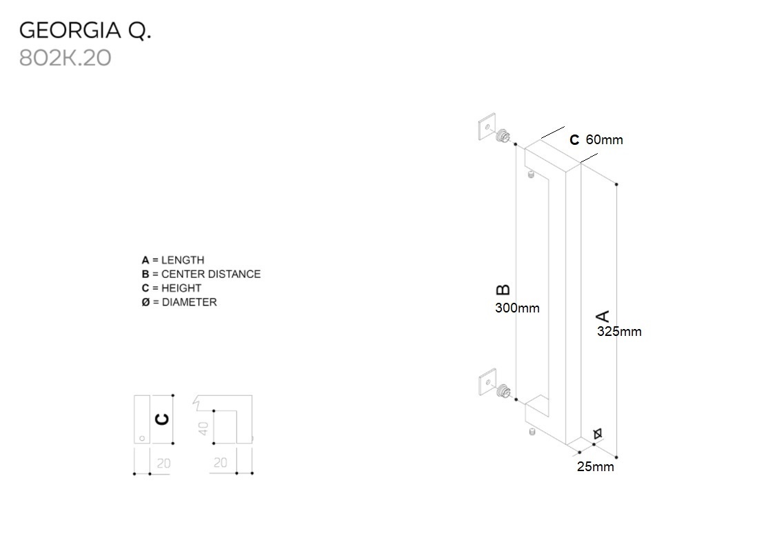 Paire de poignées de porte en acier inoxydable Georgia 25/600/625 pour portes en verre, aluminium et bois