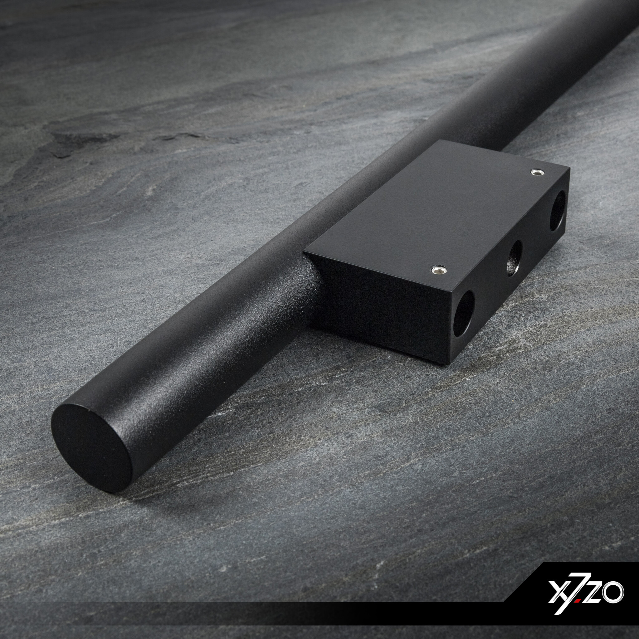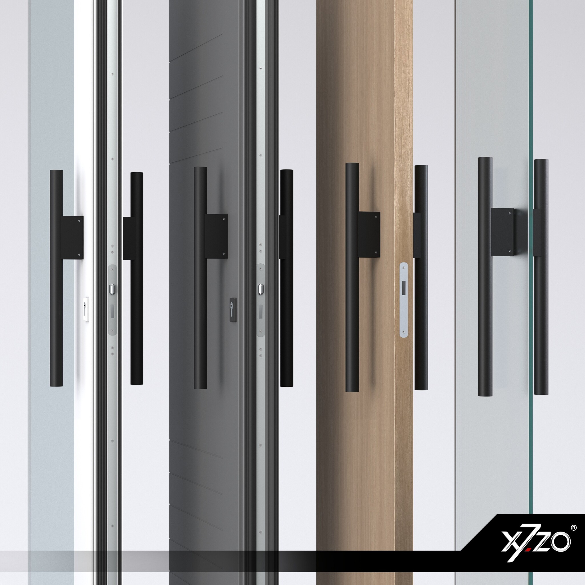 Ces poignées de porte modernes sont en acier inoxydable. La base elle-même est en aluminium, elle dispose de 2 points de montage qui offrent une solidité supplémentaire (la distance entre les 2 points de montage est de 80 mm). La poignée de porte et les pieds sont finis avec une laque texturée noire anodisée.