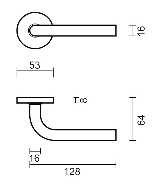 Ces poignées de porte sont montées sur des rosaces rondes à ressort et ont des poignées rondes de 16 mm.