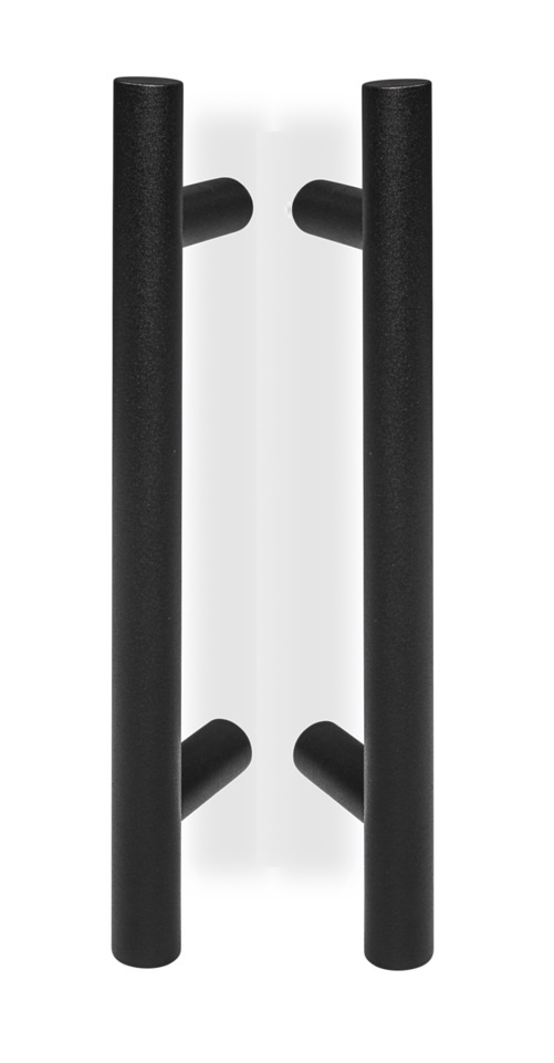 Paire de poignées de porte rondes noires avec une taille d'axe HoH de 200 mm et une longueur totale de 300 mm