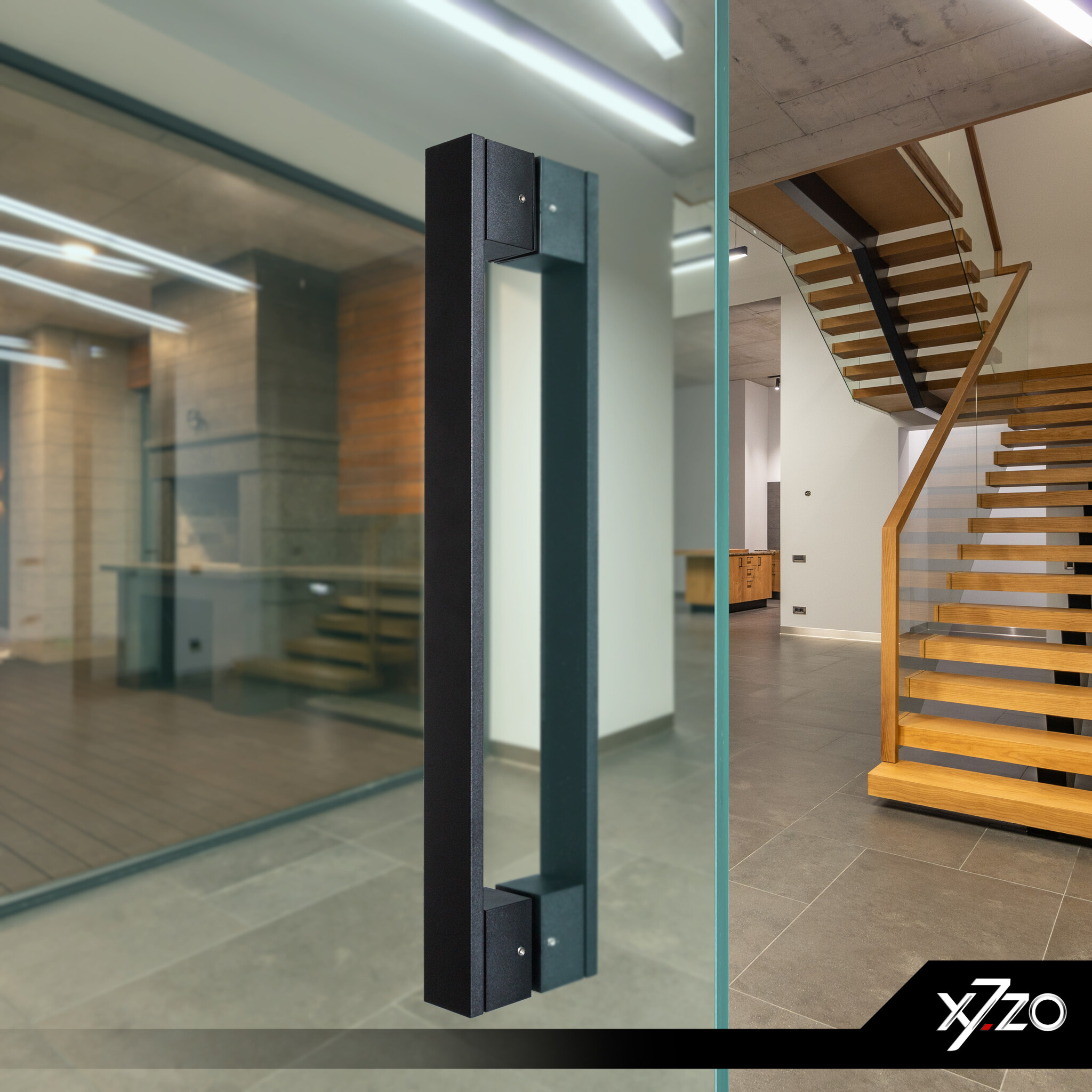 Paire de poignées de porte noires en acier inoxydable combinées à de l'aluminium qui conviennent à une utilisation intérieure et extérieure. Convient aux portes en verre, aux portes ordinaires, aux portes en PVC et en ALU