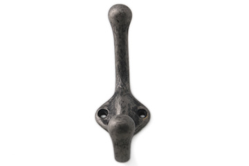 Belle patère à chapeau/manteau en étain antique de 115 mm de haut avec deux trous de montage horizontaux