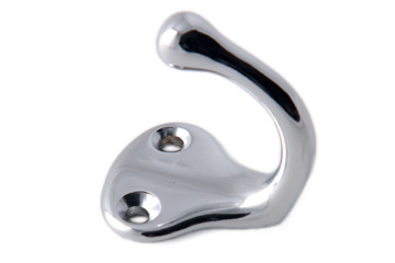 Patère simple en laiton puis chromée de 38 mm de haut avec deux trous de fixation horizontalement